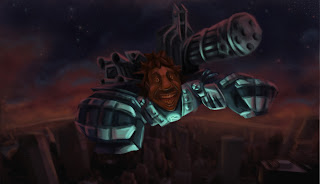Here comes another one, KRS-One! The guy has the nickname of "The Blastmaster" because of the way he would win rap battles. When I first heard the nickname, Ironman instantly popped into my head. Yeah, THAT guy fits the description pretty well. So, lo and behold, Krs-One in an Ironman-esque super suit!